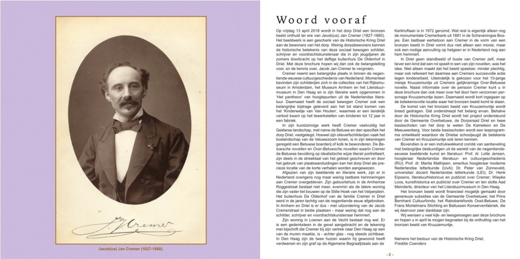 > Brochure over Jacobus Jan Cremer en het bronzen beeld Kruuzemuntje uit 2018.